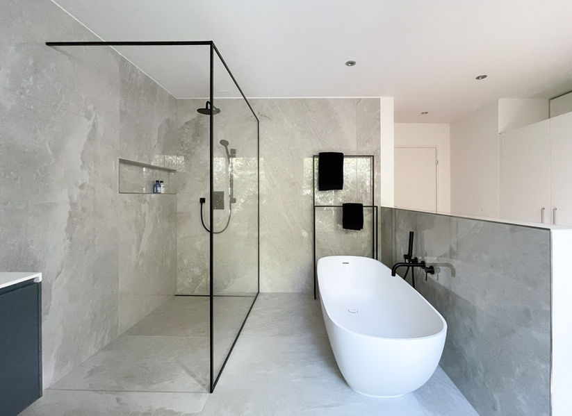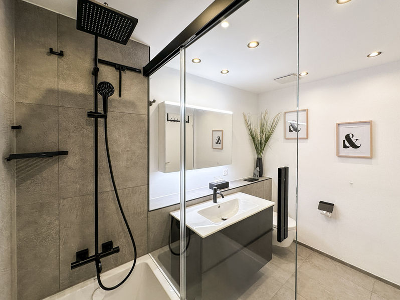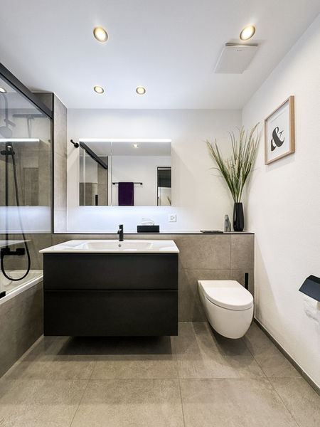 «Zeitlos modern: Neu gestaltete Nasszelle für stilvolles Eigenheim»